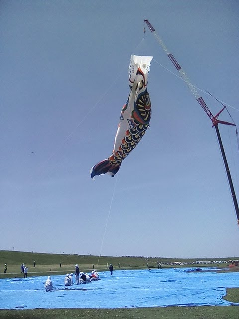 昨年は風がなくて、鯉のぼりは泳げなかった けれど、今年は風があって泳いで良かったよ。