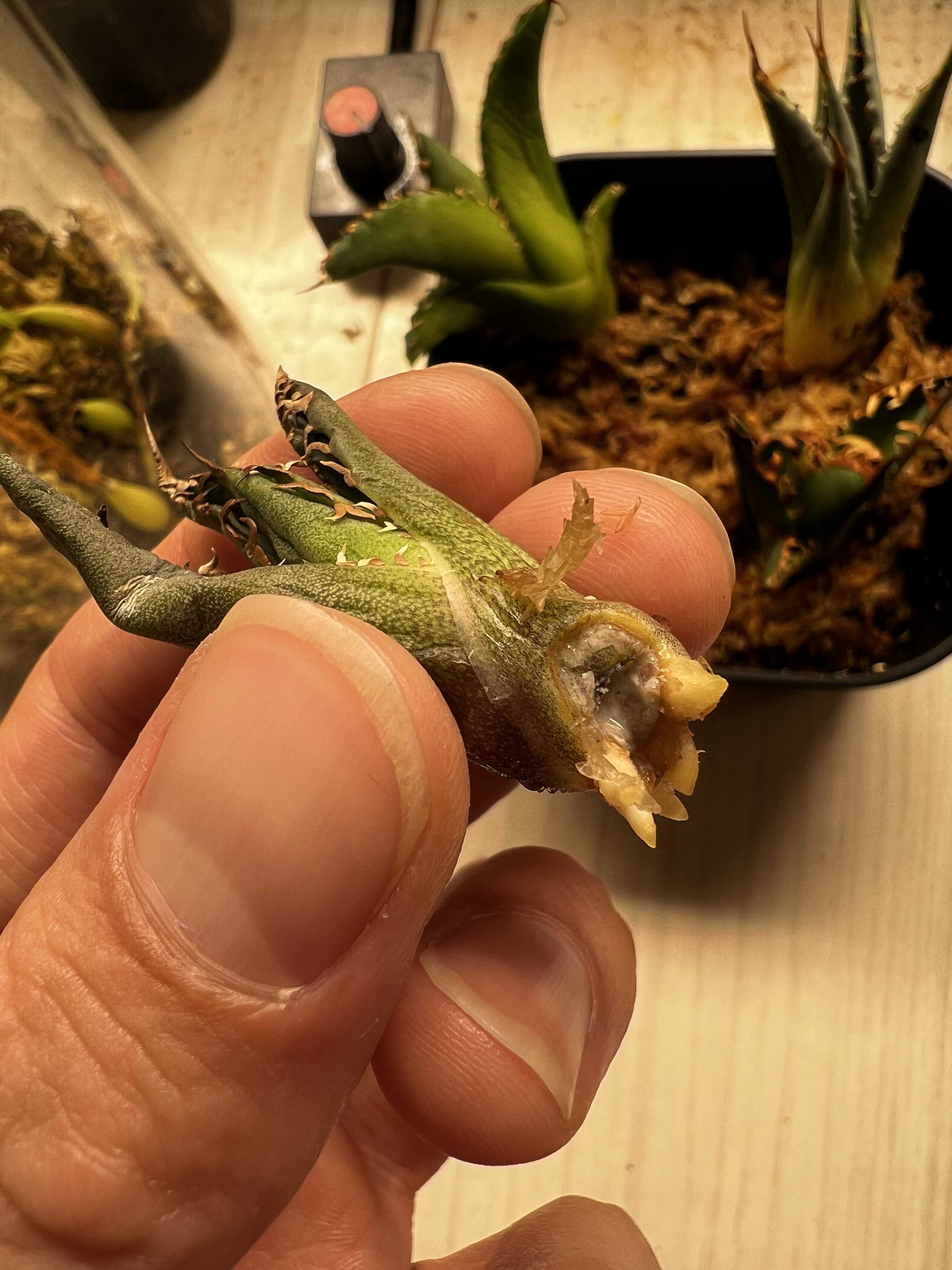 アガベの発根管理 水苔篇(チタノタ 老白鯨 エボリスピナ レッドキャットウィーズル)②
