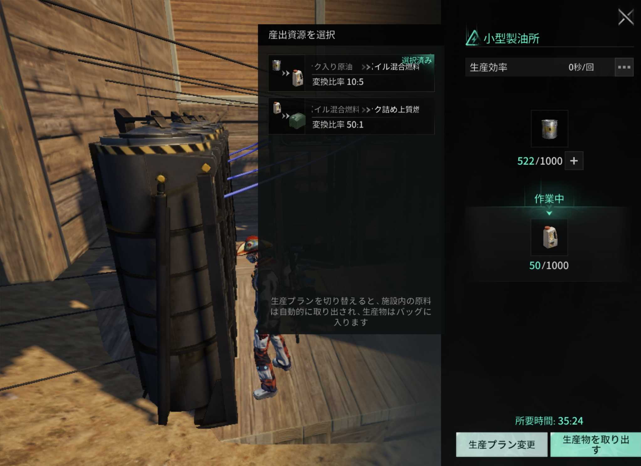 最初は生産設備になかなか思うように原油が流れて行ってくれなくて、 原油が 5コ