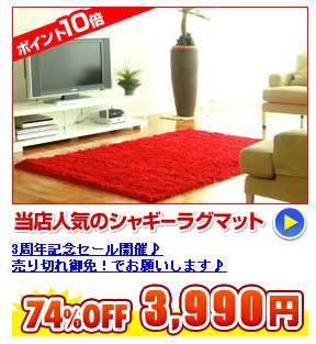 こちらをクリック!マイクロファイバーシャギーラグ【ラグ】【ラグマット】100×140cmサラサラふわふわ感が人気!床暖・ホットカーペットカバー対応ALLシーズン対応スタイリッシュラグ【50%OFF】 商品番号 microfiber100140通常販売価格12,560円 (税込) 特価5,980円 (税込 6,279 円) 送料別 超極細繊維(マイクロファイバー)素 材を用いた、まるで粉雪のようなふんわり感と、シルクのようなサラサラの肌触りの ラグマットです。おもわず寝っ転がってほおずりをしたくなるほどの最高の感触をお 楽しみください。カラー:アイボリー 画像をクリックすると拡大します商品について■素材:ポリエステル100%(マイクロファイバー糸使用)■厚さ:約25mm■パイル長:約20mm■裏面:不織布貼り■中身:ウレタンフォーム■生産国:中国スタッフの感想この触り心地はスゴイです!猫ちゃんをなでているような感触です。ふんわり感が最高です♪丸洗いできるところがGoodですね。ちょっと汚れた時にも安心して使えま す。触り心地も洗っても元に戻ってしまいますよ!カラー:ベージュ 画像をクリックする と拡大しますカラー:アイボリー こちらをクリック!マイクロファイバーシャギーラグ【ラグ】【ラグマット】100×140cmサラサラふわふわ感が人気!床暖・ホットカーペットカバー対応ALLシーズン対応スタイリッシュラグ【50%OFF】 商品番号 microfiber100140通常販売価格12,560円 (税込) 特価5,980円 (税込 6,279 円) 送料別