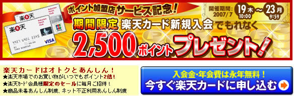 3日間限り!2007年8月10日(金)10:00~2007年8月13日(月)23:59ポイント最大10倍キャンペーンプラチナ会員ポイント10倍一般会員もポイント2倍お盆休み直前スペシャル!今ならお買い得な上にポイントUP中!くまなくチェック★どうせ買うならポイントを集めましょうo(^-^)o応援願いします。m(_ _)m