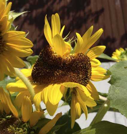 もーれつア太郎 だったかな 赤塚不二夫 のマンガの・・・目がひょうたんみたいな形でつながっててすぐ泣きながら タイホするぞーーーとか言って ピストル バンバン打っちゃうの・・・その目に似てる ひまわりが ・・・先月お孫の幼稚園に行ったとき咲いてて・・・わかるかな~~~~わかんなくていいです・・・