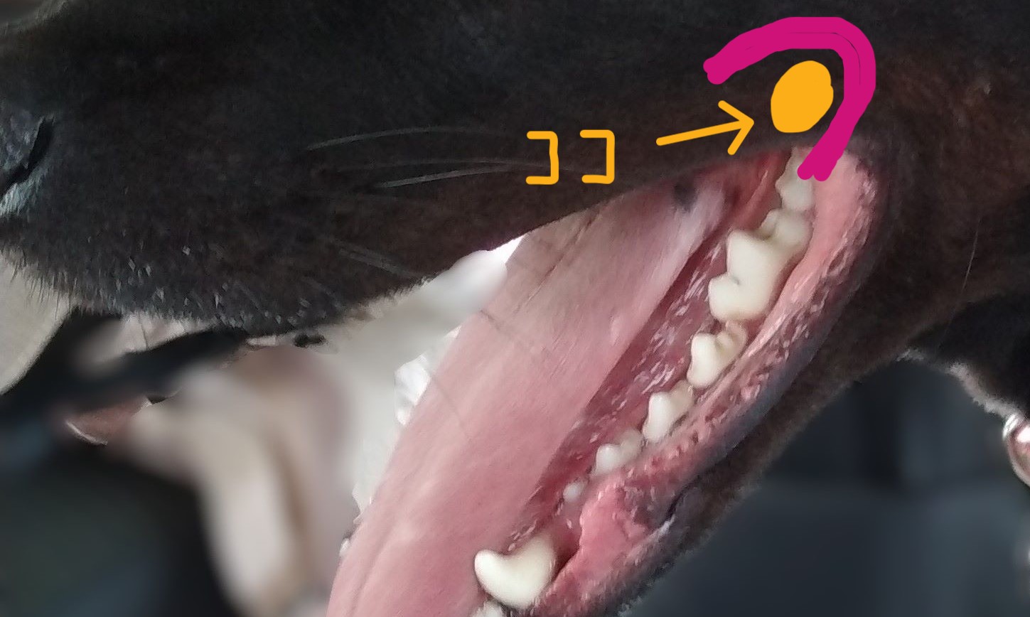 奥歯の奥の歯茎スペースに入り込んでいました。