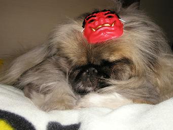 もうすぐ、節分です。お店では、節分用の豆が売っています。陸が被るのに丁度いい、鬼のお面みつけました♪まるで、なまはげ…