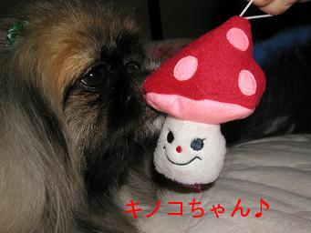 陸は、新しい物好きです。飼い主と同じ~ブル足は、いいのですが陸の顎の力では直ぐに破壊されます。すでにブル足6個、破壊しました。新しいおもちゃを買ってみました。これです! キノコちゃんは、傘の部分がカサカサ鳴って、茎はピーピー鳴ります。なかなかの優れもの!が…陸は、5分で破壊しました~もう、ピーピーなりません…今日の陸。