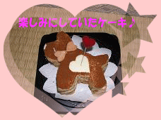 昨日、パティちゃんから頂いたケーキを食べました。可愛いワンちゃんの形をしています。 まずは、臭いを…お味は、どうかな? ガツガツたべます。自分で上手く食べれないので姉ちゃんに貰います。 一気に食べて、お腹一杯です♪パパに抱っこされて至福の時。 パティちゃん、ご馳走様~