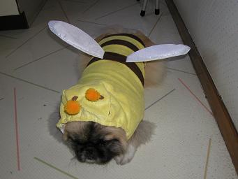 うふふ…陸に蜂さんの洋服買いました。胴長でオデブの陸にあうサイズがなかなか見つからないのですがありました。どうでしょう?意外と似合ってますよね。(親ばか試着した時は、感じませんでしたが羽が大きくてこれでは、恥ずかしくてお散歩には行けません…今日の陸。