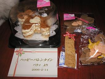 夕方、謎の小包が届きました。送り主の名前が書いていないので何だろうと…開けてみてビックリ!パティちゃんから陸へのバレンタインのプレゼントでした。チョコレートケーキとクッキーです。 陸は、自分の物と言わんばかりにクンクン臭いをかいでました。 陸、明日食べようね~ 陸は、いじけてました…パティちゃん、ママさん~素敵な贈り物、ありがとうございます。