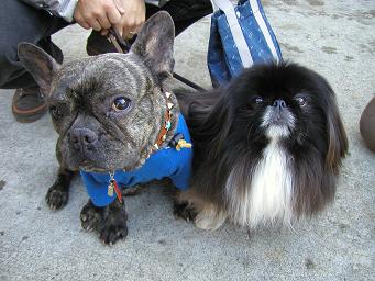 今日は、陸ねぇ不参加の為かーちゃんと陸でオフ会へ電車でGO!いつものように大人しくカートに収まっていた陸ですが…会場の駅に着く数分前になって不審な動きをするおばあさんを見て陸が初めて電車の中で吠えました。かーちゃん、焦りました~まあ~、何とか無事到着しました。本日の参加メンバー。茶豆ファミリー茶豆君、アイ@モックルファミリーモップ君、クルパ君inutaro&akumiファミリー茶々丸君、マロンちゃん、クワトロ君GAN&AYAファミリーロンロン君です。可愛いワンピース姿の茶豆君。 仲良しコンビ、モップ君とクルパ君。お初のクワトロ君、茶々丸君、マロンちゃん個性が出ていました。 大きくなったロンロン君、初めて歩いているところ見たかな?またしても、ドックランで固まる陸でした。しかし、今日はペキを愛するアイさんが陸に噛まれる危険をかえりみず陸を抱っこしてくれました~ありがとうございます。家族やトリマーさん以外に抱っこされたのは初めてです!そして、恐るべしペキニーズ。みんなでチワワに群がってました~ チワワのマロ君、ごめんね~可愛いツーショット♪バックに収まる2ペキ。 今日も楽しい時間、ありがとうございました。幹事の茶豆パパさん、ママさんお疲れ様でした~今度は、居酒屋で…今日の陸。