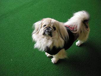 いつものようにお散歩に行きました。お休みなので、お昼の暖かいうちに…途中、工事現場でお仕事中のおっちゃんが陸を見ながら「その犬なっていうの?」おっちゃん「ペキニーズです」私「ペキニーズって、毛長かった~」「はい、長いです…」「何、顔に付けてるの?」「耳毛が長いので汚れないように…」「ふ~ん、うちもパピヨン飼ってるけど耳毛長いよ~」「そうですね」明らかにおっちゃんは、スヌード付けてる陸が可笑しかったようで笑いを堪えていました。やっぱり、スヌード付けての散歩は笑えるのかな~今日の陸。