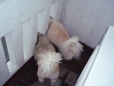 旅行二日目も朝から雨これでぺ様の雨男確定かな?夜は、慣れ毎場所で陸は不眠気味。ぺ様、ベットに上がったり降りたりしていたので私も不眠です。七時に起きてワンズと部屋のベランダへ。ワンコ用の穴から外を覗きます朝食済ませて今度は、ペキ友達のやんやんさんと伊勢神宮で合流初めてまめ君と会いましたがぺーちゃんにソックリ!まめ君もあずき君と同じ生後五ヶ月。お母さんのはなちゃんは、お留守番ですが陸と親戚です。カーボーイ風に決めてます。似てませんか?くるみパパさん&ママさんにワンズみてもらってやんやんさんと伊勢神宮参り。ワンズお供にみんなで参道を散策沢山の観光客の人に見られてました~お昼は、くるみママさんお勧めの「手ごね寿司」美味しかったよお店の縁台でワンズとご飯食べてたら…又しても沢山の方に声掛けられました。もちろん「なんて犬種ですか?」です。ペキの認知度低いようです~今回の旅行で一緒だったくるみちゃん&あずき君。仲良しでやっぱりマイペース。最後におかげ横丁と伊勢神宮の前で記念撮影。くるみちゃん一家とやんやんさんに見送られて帰りの電車に…ところが事故があったらしくて特急電車が運休。急行に乗って帰ります。ワンズ疲れたようで爆睡でした。くるみママさんから頂いたおみあげ雨で残念でしたが楽しい旅行でした。くるみパパさん&ママさん、やんやんさんありがとう!