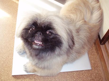 ぺーちゃん、トリミングに行きましたトリマーさんに抱っこされても尻尾フリフリ~一時間半後、お迎えの電話。行って見るのと…まるで、タヌキじゃん~チェックのリボン可愛いのに似合ってない!本人笑ってるけど~どう見てもタヌキ陸は、いつも違う臭いのするペーちゃんが気になってクンクンしてました。今日の陸。