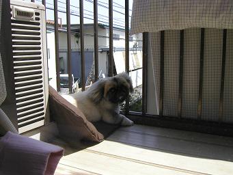 ベランダに居ると通る人やワンコ見て楽しんでいる。