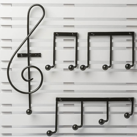 音符の形をしたウォールフック。壁に描かれた五線譜のように見えて、楽しくてインテリアにもなりそう。特に音楽好きな人にぴったり。