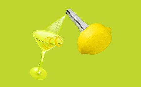 生レモンがそのままスプレーにしてくれる面白グッズ。皮の上から直接ねじ込むだけで、ヘッド部分をプッシュすれば、レモンの果汁を霧状にスプレーすることができて、とっても便利。