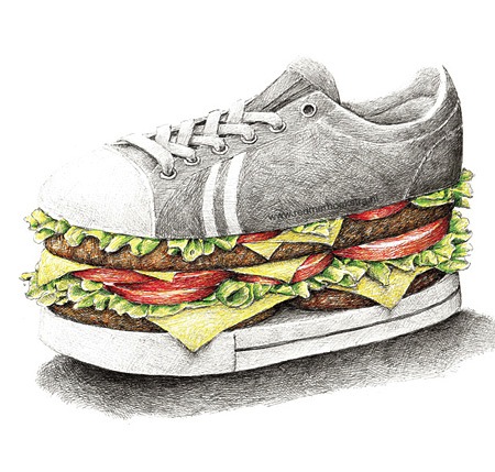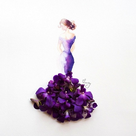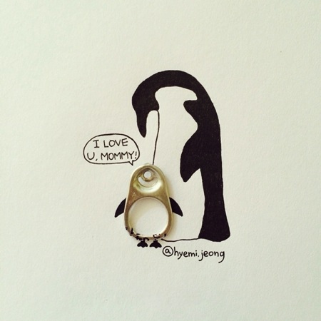 身近なものを利用して描いたイラストアートの作品。女性らしい視点で描かれて、とてもかわいい。