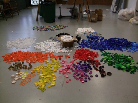 アメリカシカゴ在住のアーティストによる肖像画。カタチや色や大きさの違うボトルキャップを数千個ぐらい集めて、それをうまく組み合わせることで、ユニークですばらしい肖像画を作った。