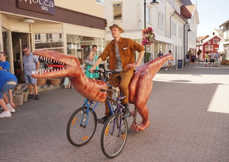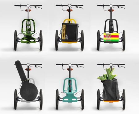 荷物用のキャリアを備える3輪自転車。前方の2輪部分を本体から取り外すことが可能となり、それを利用してショッピングを楽しむことができる。3輪を持っているので、重い荷物を搭載しても大丈夫。長さは145センチだが、それを折りたたんだ後に、60センチ以下になり、収納などにも便利。