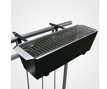ベランダで手軽にBBQを楽しめるグリルセット。60cm x 23cm x 18cmのコンパクトなサイズを持って、手すりなどに固定されていて、2人でお家でもBBQをすることができる。