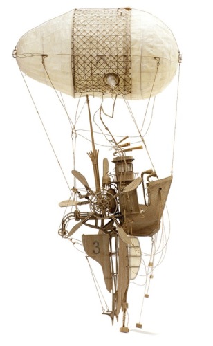【これがダンボールとは】ダンボールで制作されたフライングマシーン。細部の構造まで行き届いて、ダンボールとは思えないほどすばらしい。