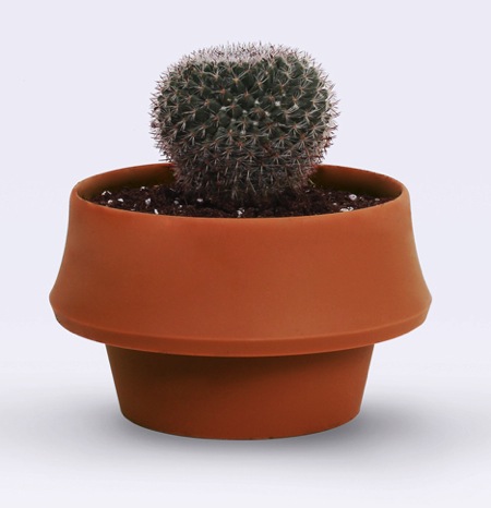 シリコンゴムでできているポット。折り曲げる構造を持って、植物の成長に合わせて、その大きさを変えることができる。
