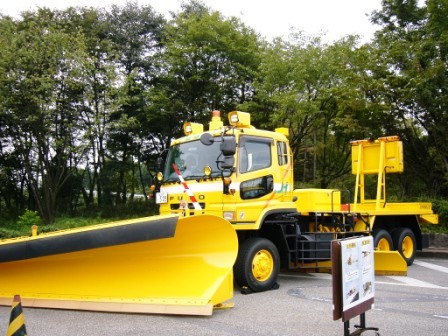 今日は、前から彼が行きたいって言っていて興味を持った「ネクスコ中日本1周年イベント」に行って来ました。私のパパも行きたそうだったので、運転手係になってもらいました。私の家の近くだったので、彼を駅に迎えに行くと・・・彼の目が点に・・・びっくりさせてごめんねICに行き、高速に入る・・・途中、工事とかあって、1車線になってて抜かせない下手に追い越し車線入っても、イベント会場はSAだからだめだし・・・高速道路なのに、60kmくらいになってました。SAに入ってすぐに、ネクスコの黄色いパトカーが・・・「おー」って、車を降りてすぐ走って行った私と彼(笑)他には、でっかーい除雪車と、リフトカーと、県警高速隊のパトカーと、後ろにモニターの付いたサインカーなるものがありました。<でっかーい除雪車。季節はずれですが・・・>しばらくすると、ネクスコの職員の方が、リフトカーに乗ってみてくださいとのことで、3人で乗ってみました。一番上まで上げたら、大体5mちょっとの高さになるそうです。<リフトカーを、一番高くした上から撮影>揺れるので、高所恐怖症の方はご遠慮下さい(笑)トンネル内の清掃に使うそうで、これでも結構おっきいのに、これの約1.5倍のものもあるそうです。高いところが好きな私はルンルンでした降りてから、ネクスコのパトカーを見ました。元の車種はトヨタのハイラックスサーフ。後ろの座席は取り外してありました。まず、上にあるパトライトから。ドアを開けた瞬間、彼が赤色灯のスイッチに手を伸ばす・・・その、瞬時に赤色灯に手を伸ばした手馴れている感に驚くネクスコ職員様上のタイトを見て「わぁ~光ってるぅ」とルンルンな私と彼(笑)その後、後ろにある電光掲示板の操作方法などを見せてもらいました。「事故」とか、そんなのが99通りあるらしく、よく使うものは既にボタンになっていて、残りは色々組み合わせて99あるそうです。リモコンで操作してもらい、「渋滞」とか表示してもらいました。職員さんも、操作が難しそうでした。トランクに積んでいる物も見せてもらいました。私の車に積んであるのよりも明らか大きな発炎筒が10本くらい。やっぱ、一般のものより時間が長くて威力があるそうです。あと、重いコーンが数個、光る矢印掲示板?が数個などなど・・・おぉ~なんて思いながら。ちょっと難しい事も言っておられました。私には「???」でしたが、彼はよくわかるようで。さすがや尊敬します(笑)次は、県警高速隊のパトカーを見ました。これもトヨタハイラックスサーフ。多分、先ほどのネクスコのものとバージョンはほぼ一緒だと思われます。ここでも、パトライトを点灯させ、ワイワイはしゃぐ私と彼。これは、取締りをするものじゃなく、事故や災害の時に出動させるものだそうです。中越地震の頃に導入されたとか。無線など、中のものを見せてもらい、トランクも見ました。コーンや水なども入ってました。なんか粉?もタンクに入っていました。くるくる光る案内板?も。後部座席には、ヘルメットも置いてありました。県警高速隊員さんに説明を受けてる際、どうしても目の前の階級章や手錠に目が行ってしまう私。ホンモノだーみたいな。サインカーの電光掲示板には、県警マスコットの立山くんが映し出されていました。サインカーは、初めて見ました。こんなんも警察車両にあったんだ・・・と驚き。現役の白バイもありました。彼とパパがまたがっていました(笑)私はスカートだったので諦めました。その後、隊員さんに「ETC不正通行取り締まり強化」のビラをもらいました。すると、地元新聞社のカメラに写真を撮られました。2社のうち、1社はうちも彼のうちも取っている新聞でした。(後日談:次の日の新聞にちゃっかり載っていました)その後、一旦家へ帰り、私の車で彼を家まで送りました。お昼だといい時間の電車が無い・・・田舎だなぁそれにしても、パパは彼のこといい風に思ってるっぽくて。よかったよ。ただ、ノリの遅いパパは、彼の前で無口だったので、彼が嫌われてるって思ってたじゃん・・・ま、いい方向でよかったよ。
