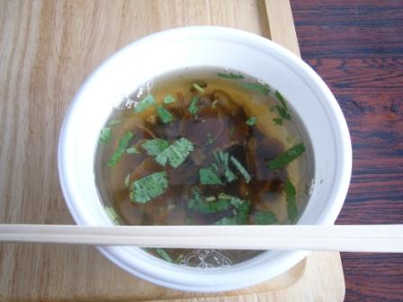今日は、彼と県内ドライブ。県内の大型ショッピングセンターにウインドウショッピング(笑)給料日前でお金が無いのよ・・・と、そこへ行く道中、ドライブインに「きのこ祭り」ののぼりが・・・気になって寄ってみました。山道の途中のドライブインの裏山に、きのこ園があるらしく、そこで採れたきのこをそのまま販売したり、きのこご飯やきのこ汁なども販売していました。美味しそうな香りに誘われて・・・お腹空いてた私たちは、きのこ汁を買いましたおすまし汁みたいな感じで、中にはまいたけ、ひらたけ、しいたけ、なめこが入っていました。200円でしたが、なかなか美味しかったです。ボリュームもありました<なかなか美味しそうでしょ>彼は、なめこ栽培キットを買っていました(笑)ちゃんと育ったら、私にも少し分けてねなめこ汁でも作ろう♪