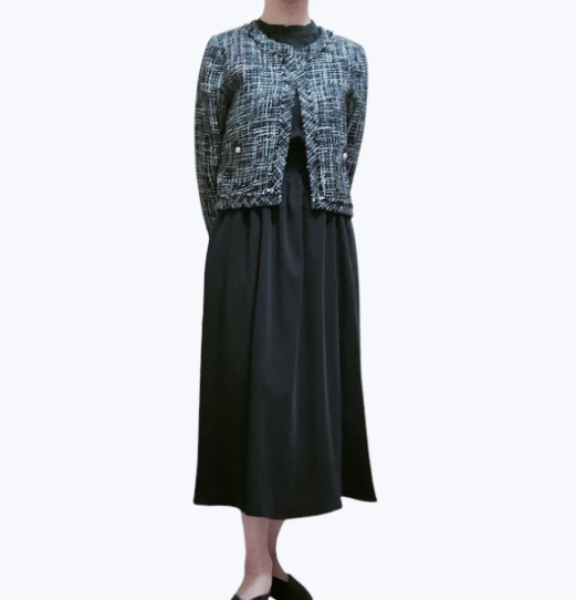 【2/26 12:59まで!1760円OFF中】【送料無料】ミックスツイードノーカラージャケット×スタンドカラータックワンピース セットアップ M L 礼服 卒業式 卒園式 入学式 入園式 レディース 2点セット セットスーツ ジャケット ワンピース セット ツイード セレモニー BLUEEAST