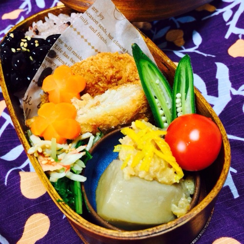 こんにちは。昨日は出かける予定がどたきゃんで。でもかえって良かったかなと。久しぶりに早寝しました。そして早起きするつもりが、いつもと一緒だったざっくりと今週のお弁当ふりかえりです。月曜日は黒米を炊きました。ミンチカツ(冷凍してたやつ)を水菜のおひたし。里芋と蓮根のたいたんのそぼろ白味噌あん。そぼろ白味噌めっちゃお気に入りレシピです。酒でそぼろを炒めて、火が通ったら、砂糖、薄口醤油、白味噌を加えて、もったりした固さになったら出来上がりです。白味噌のもとの甘さ加減で砂糖は調節します。さといもトロトロ 柚子をのせると綺麗ですね。(柚子の皮千切りして冷凍保存しました) 火曜日は、鱈の味噌漬け焼いたん。こげるね~・・・。でもおいしっ 今日は、黒豆とひじきの炊き込みご飯にしました。黒豆は蒸し黒豆とかって売ってたのを買ってたやつ~。柔らかくて美味しいです。ヘルシーな感じになりました。水菜のおひたしと、かぼちゃのそぼろ餡かけ、パプリカは素揚げです。かぼちゃ~は濃い目の味付けでお弁当に合うかなっと。 今日も良い一日を♪ お弁当大好き~☆おいしいご飯大好き~☆ぽちっとよろしくお願いします↓にほんブログ村 趣きを感じる天然素材のお弁当箱 【お弁当箱|ランチボックス】天然木製 マグランチ 小 【あ...価格:2,650円(税込、送料別)
