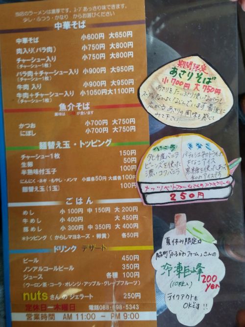 そうそうお店の方は、魚介好きなら"にぼし"の方が、、、と言っていました。。。ほぅほぅ、確かに"にぼし"の風味もGOODです!! ただ私的には最近、松山の「 オサカナトンチャン 」さんで、キョーレツ"煮干し"を味わったので、今日は"かつお"で満足満足!!
