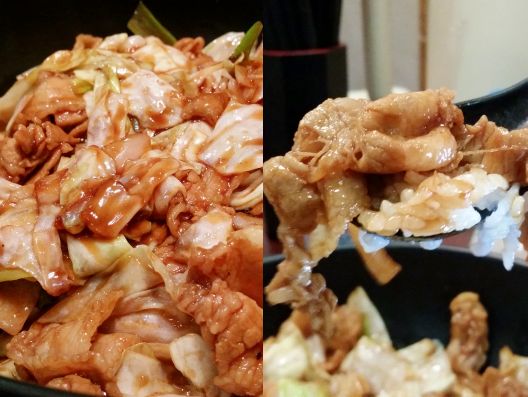 また家内発注の"焼肉丼(小)"、、、ええぇぇぇっ!? これが(小)??? と思えるほど、スーパーボリューム。。。まぁ味の方は、焼き肉のタレ味の、"牛肉野菜炒め"がご飯にトッピングされている、、、という感じですが、このボリュームでお値段500円は、あり得ないでしょう!!