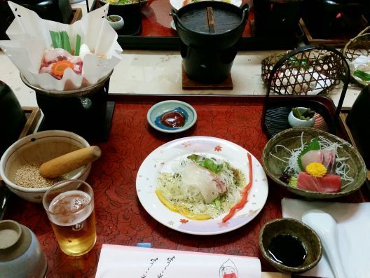 "鯛兜煮"は寒い温泉場なので、少し濃いめの味付けです。。。また"天麩羅"は、油を温めた鍋の中に投入、、、揚げたてのアツアツでいただきます。。。そして〆は"鯛釜飯"ですねぇ、、、うんうん、旨い旨い~☆