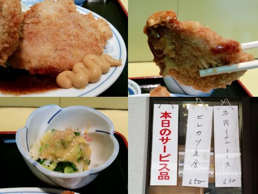 まずはいつものように入り口の"本日のサービス品"を確認です、、、おおぉぉぉ、"ヒレカツ定食"があります。。。ちょうど揚げ物系が食べたかったのですねぇ、、、席に着きそれを注文しました。。。そして今日はあまり混んでいなかったので、、、待つこと約5分でできあがりです。。。