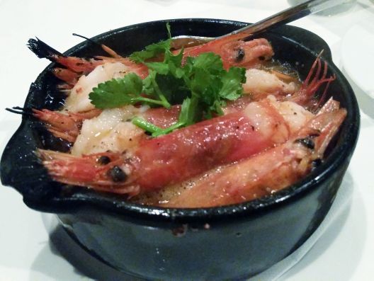 いつものように軽い前菜から始まりました、、、そして今夜のメインは"エビのアヒージョ"でしょう。。。大きなエビがグツグツと、オリーブオイルのお風呂に浸かっています、、、プリっとした甘い身がGOOD!! うんうん、旨い旨い~☆