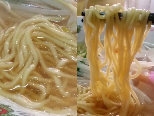 さぁ気になるお味です。。。麺はやや細めのカクカクっとしたウェーブ麺、、、加水はやや多めでモチモチながらシットリとした食感でしょう。。。あれっ!? この食感は「 藤原製麺 」さんの麺と特徴がほぼ同じです、、、そう言えば茹で方もよく似ていますねぇ。。。そしてスープは、プンプンとレモンの香りが漂うアッサリ系の塩味、、、爽やかな酸味と旨味がGOODでしょう!! 「ダイソー」さんのイメージとはかなり違って、予想以上の出来映えの袋麺ですねぇ。。。うんうん、旨い旨い~☆