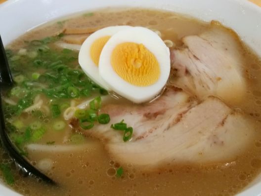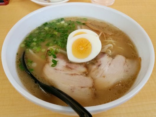 暖簾をくぐったのは午後1時半ころでしたが、店内は結構混んでいて10人位のお客さんがいました、、、一人の私はカウンター席ににつき、単品で"しょうゆとんこつ"を注文です。。。その注文をしながらカウンターの上に"ゆで卵"を発見したので、トッピングにとお願いしました、、、そして待つこと約8分で、注文のできあがりです。。。