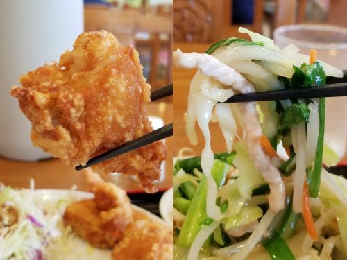 [Bランチ(野菜炒め・唐揚げ):¥750(税別)]