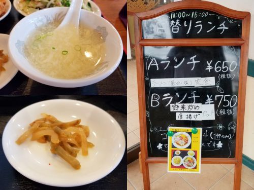 さて入店時、入り口のボードを確認すると、Bランチは"野菜炒め"と"唐揚げ"です、、、おっ、ちょうど"唐揚げ"が食べたかったんです!! それにしましょう。。。