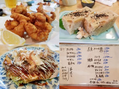 [下足唐揚げ、イギス豆腐、とろろ焼き]