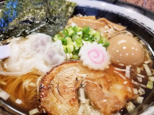 さぁ気になるお味(本丸特製)です。。。まぁ基本的な味は、前回いただいた"本丸しょうゆ(玉)"と同じなので、 そちら をご参照ください、、、明らかな違いは、海苔とワンタンが追加トッピングされていると言うことです。。。ワンタンは1つでなく2つでした、、、ワンタンの肉プチと、生地のニュルニュルがGOODでしょう!! うんうん、この"本丸特製"も、旨い旨い~☆