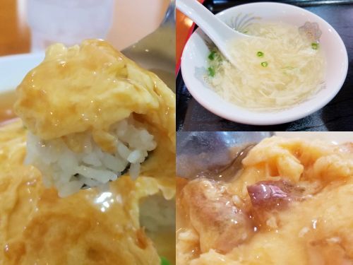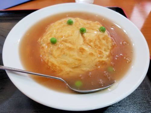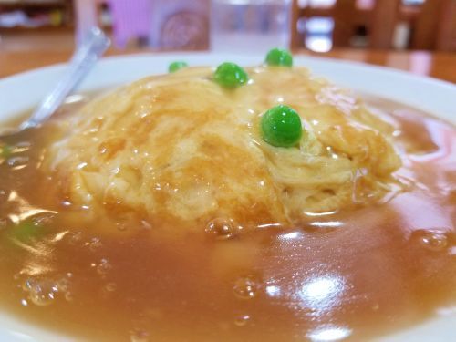また芙蓉蛋(オムレツ)は、小さく刻まれたチャーシューが混ぜ込まれ、少し固めの仕上げでしょう、、、そして餡の味は付いているスープより濃いので、スープが口直しみたいになっていますねぇ。。。うんうん、旨い旨い~☆