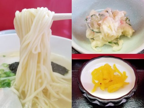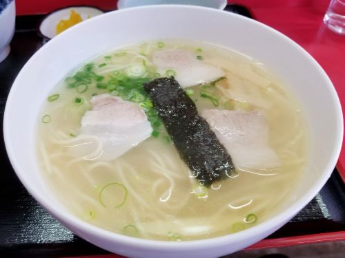 さぁ気になるお味です。。。まず麺は中細で、加水やや多めのシットリ系ストレート、、、ゆで加減はまずまずの固茹ででGOODでしょう!! そしてクセがあるけどあっさり塩味の久留米系白湯のスープに、薄いけどシャキっとしたチャーシューに海苔。。。うんうん、旨い旨い~☆