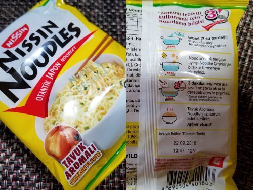 また作り方ももちろんトルコ語なのでよく分かりませんが、、、絵をみると、400mlのお湯にスープと麺を入れ、3分煮込んでできあがりのようです。。。日本のインスタント麺は、たいてい麺だけ茹でて、後でスープを混ぜるのですが、海外のはごちゃ混ぜのものが多いようですねぇ。。。