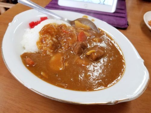 さぁ気になるお味です。。。まず"一口カツ"は、上質の白く輝く豚肉です、、、そのカツにスパイシーでやや辛口のカレールーが絡みます。。。まずカツを囓って、次にカレーとライスを口に運びます、、、うんうん、旨い旨い~☆