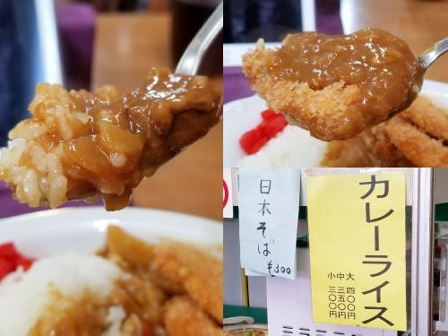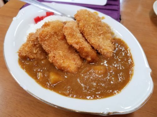 午後1時15分頃に暖簾をくぐると、珍しくお客さんはいません、、、ちょうどオリンピックの女子フィギュアスケートだったので、みんな見ているのでしょうかねぇ。。。さて作り置きおかずの棚に目をやると、おっ!! "一口カツ"があります、、、これで食べるべきが決まりました、、、私は"カレーライス(小)"をお願いしました。。。