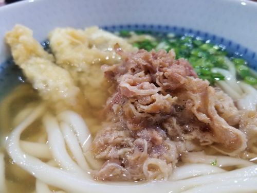 またトッピングはごぼ天、牛肉、ネギで、指位の大きさのゴボ天はコリコリっ!! 牛肉も甘ったれず、ほどよい甘みがGOOD!! うんうん、旨い旨い~☆