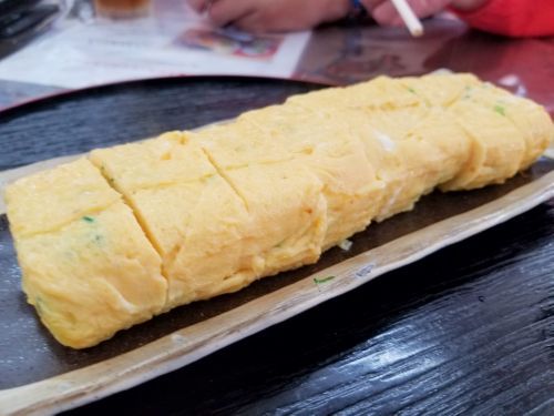 そして最後になりましたが"DASHにら玉"。。。なぜ"DASH"と付いているかと言うと、店主さんが「THE 鉄○DASH」の番組で、松○君と共演したそうで、、、その時のことをヒントにメニュー化されたからだそうです。。。もちろん使用されている卵は、高知が誇る"土佐ジロー"、、、この玉子焼きにもじゃこの出汁が使用されているようです。。。うんうん、"DASHにら玉"もGOO~~D!!
