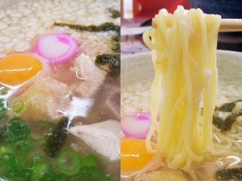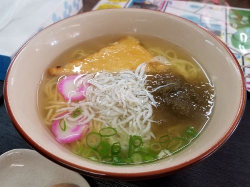次に"ちりめんちゅうにち"。。。こちらも麺は同じですが、スープが完全に和風と言う感じです、、、何でもちりめんじゃこを、釜上げにする時に出た出汁がベースだとか。。。なのでスープは超アッサリっ!! そしてトッピングも、ちりめんじゃこ、きつね揚げ、トロロ昆布、かまぼこ、ネギですねぇ、、、もちろん、旨い旨い~☆