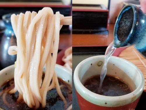 さぁ気になるお味です。。。「そば正」さんの蕎麦は、一番粉(甘皮も外した真っ白の粉)で打たれたであろう更科系だったと思います、、、でも以前はもっと白く透き通っていた気がしたのですが、今日の蕎麦は少し色が付いているようです。。。中位の太さの蕎麦は、ツルツルっとした喉越しとクンっとした食感ですねぇ。。。