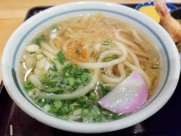 次に"うどん(温)"。。。麺は細めの今治風タイプ、、、でもコシ抜けでなく、少しグミ系のクニクニ食感があります。。。そして出汁は鰹の香るアッサリ味、、、"天丼"の油っぽさを、このアッサリの出汁が中和してくれます。。。うんうん、旨い旨い~☆